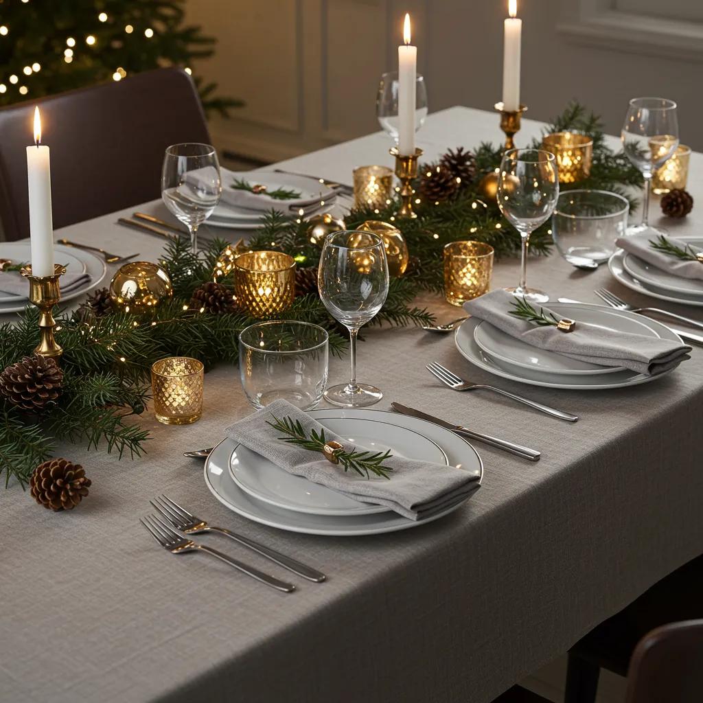 | Classic Christmas | Red, gold, deep green | Velvet linens, gold flatware, evergreen centerpieces |