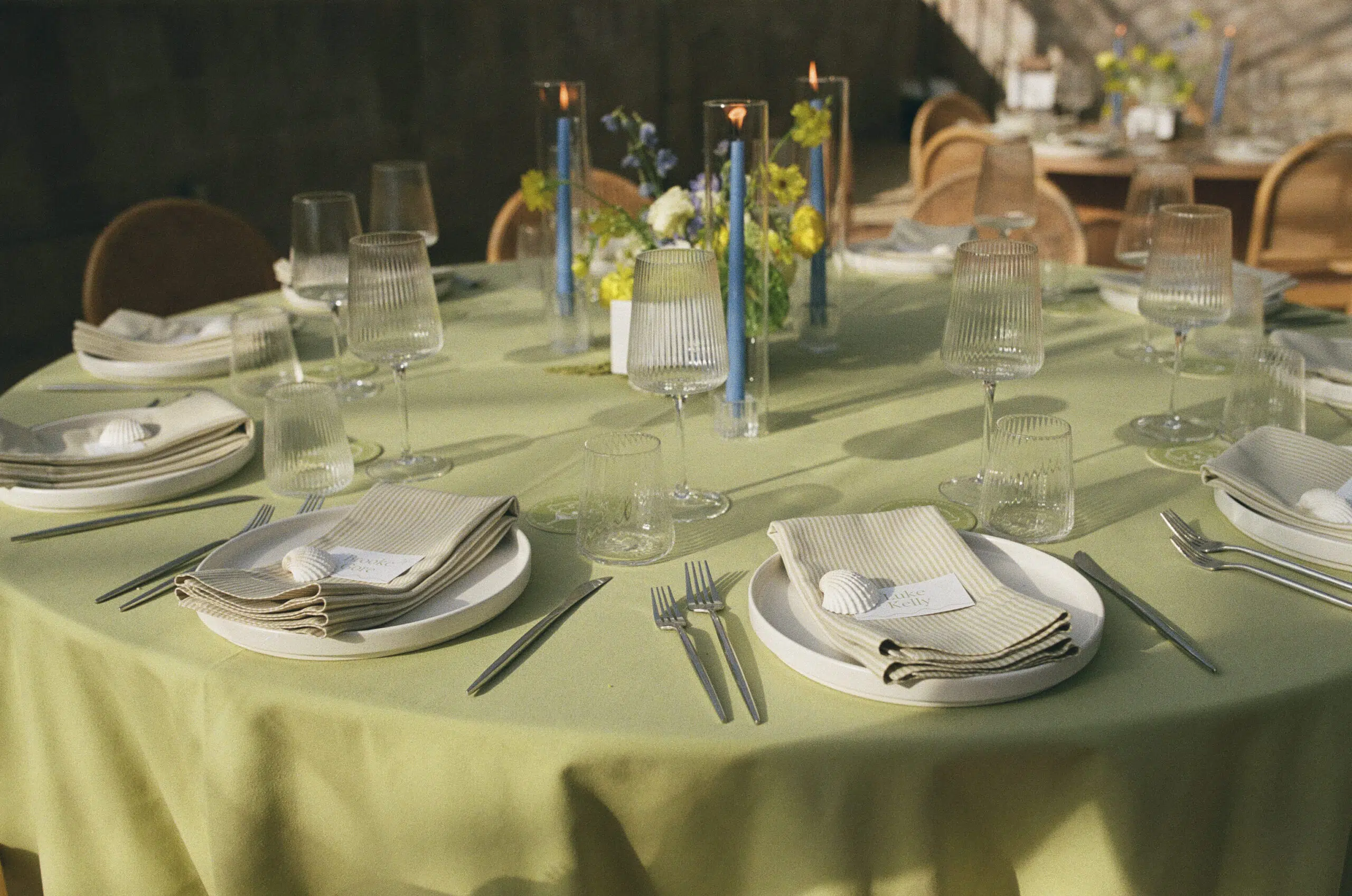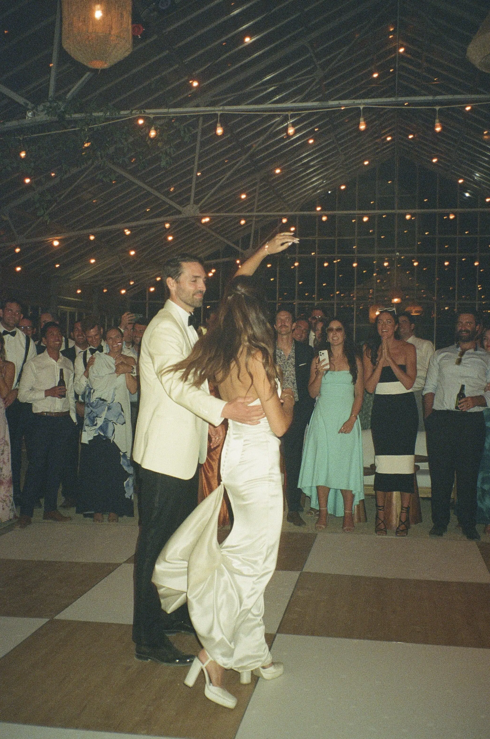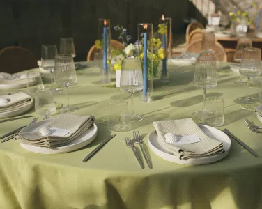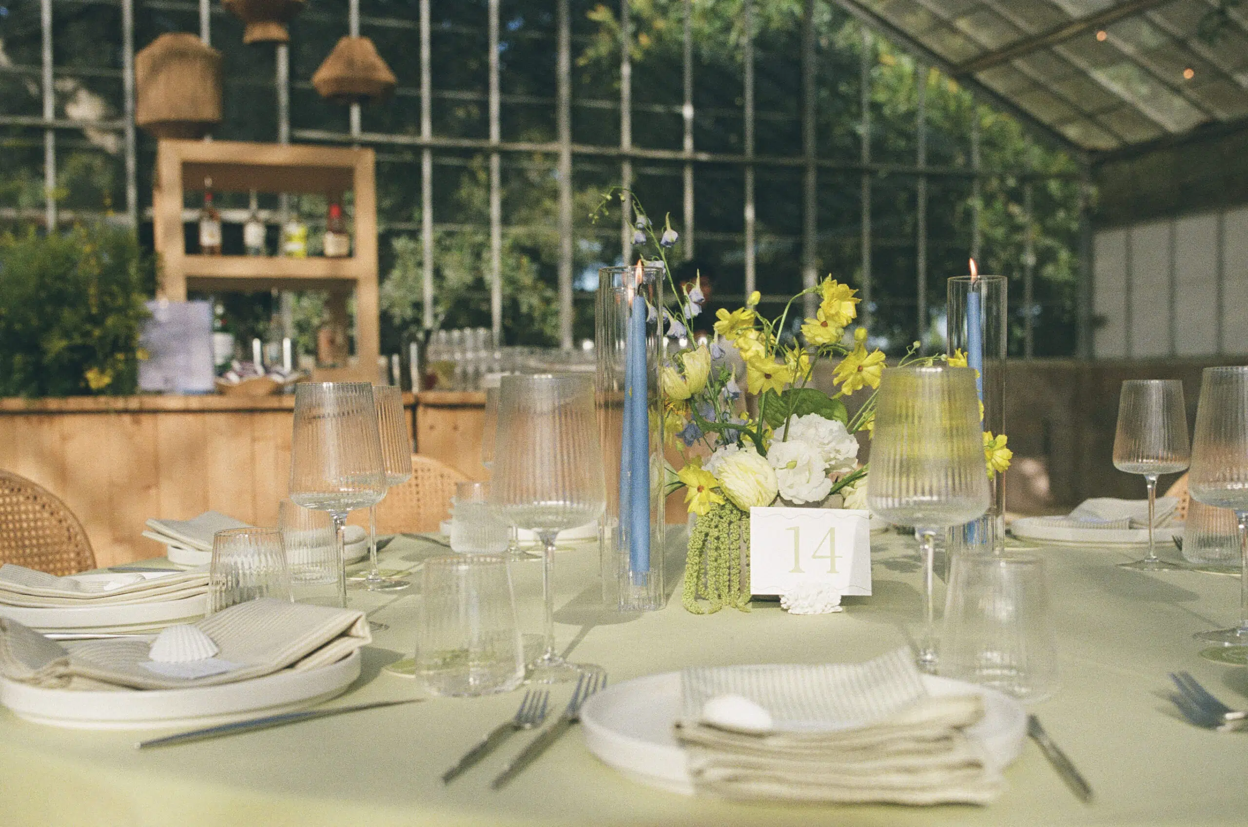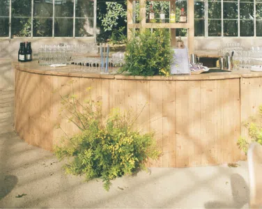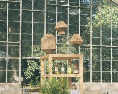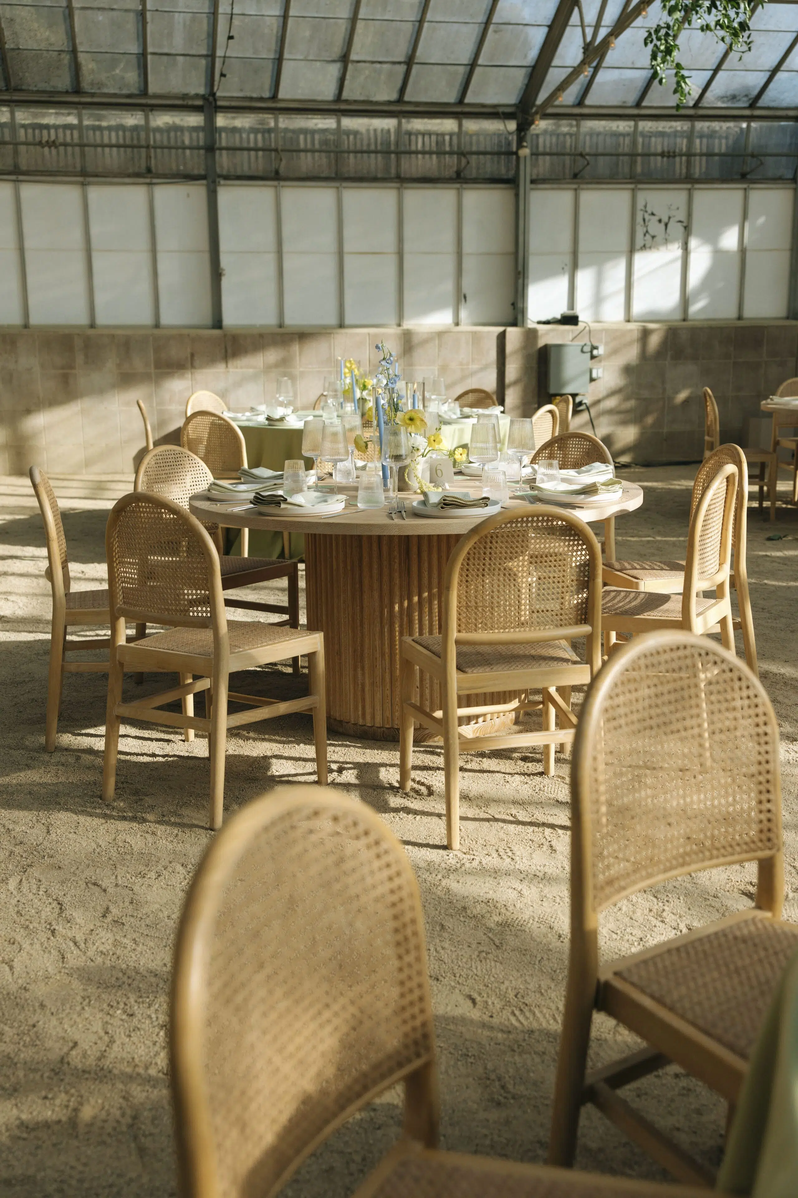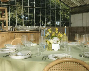 This romantic rustic wedding in Santa Barbara, CA combined the charm of an outdoor reception with the beauty of a greenhouse celebration. Ventura Rentals styled the event with elegant seating using the Capri Folding Chair, intimate dining around the Round Table, and soft tones brought by the Celadon Polyester Linen. Guests enjoyed artisanal touches with the Stella Cotton Stoneware, refined details from the Dragonfly Flatware, and sparkle from the Verona Ridged Glassware. The bar area stood out with the rustic Wood Plank Grand Full Circle Bar, while the glow of the Langing Pendant Light Rattan Lantern created a warm atmosphere. Cozy lounge moments were set with the Loveseat Amalfi and Amalfi Chair, and the celebration came alive with a Disco Ball above the Wood & White Dance Floor.