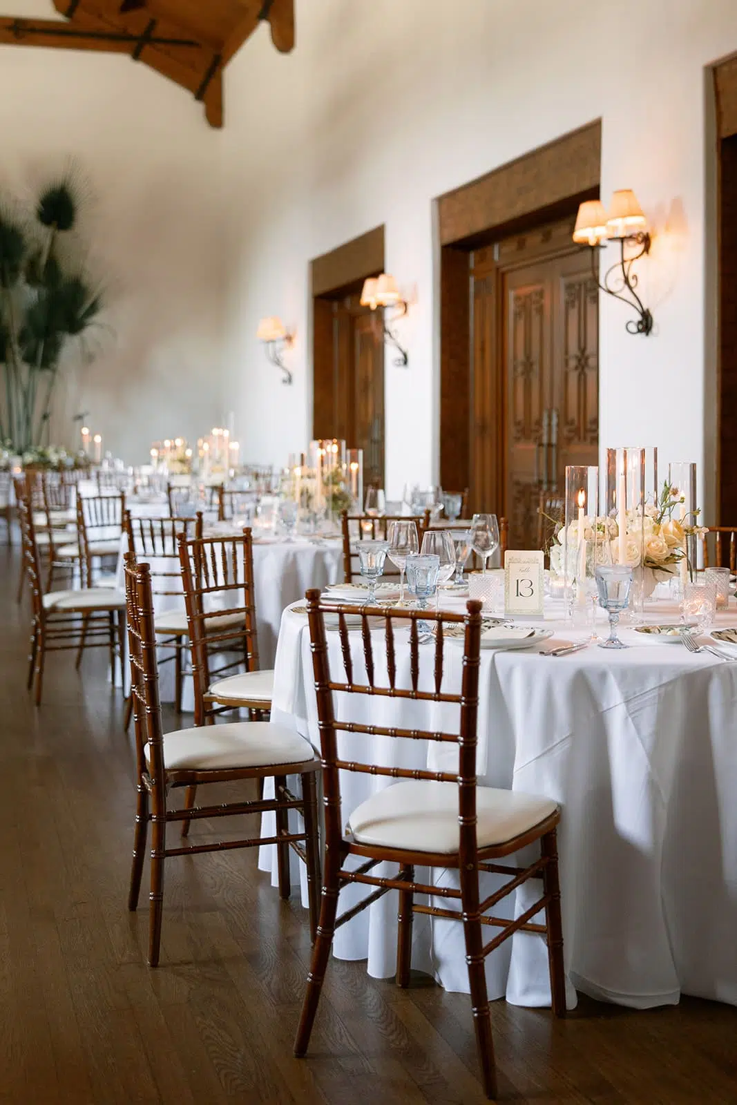Nestled within the lush grounds of Montecito Club in Santa Barbara, this outdoor wedding exuded refined elegance and timeless style. For the ceremony, guests were seated in crisp White Resin Folding Chair, creating clean lines against the garden backdrop. During the reception, the graceful presence of Fruitwood Chiavari Chair carried forward the polished aesthetic. Guests socialized at Round Cocktail Table settings dressed in Avocado Toile GRDN Linen, while the charming Billard Bar offered libations beneath the shade of “Off White” Market Umbrella. Dinner settings featured Round Table arrangements draped in White Polyester Linen, with place settings elevated by the refined Eleanor Fern Collection china and paired with Classico Wine glassware. As twilight fell, the reception warmed into evening on the pristine White Dance Floor, where elegance met celebration in perfect harmony.