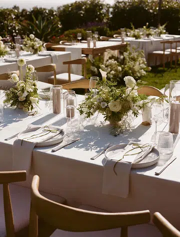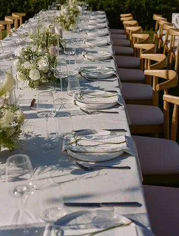 Draped across the Banquet Table, Cambria Natural Linen brought subtle texture and softness with its neutral palette. The linen’s natural weave complemented the outdoor setting, adding a refined yet relaxed feel that invited guests to linger over dinner in comfort and style.