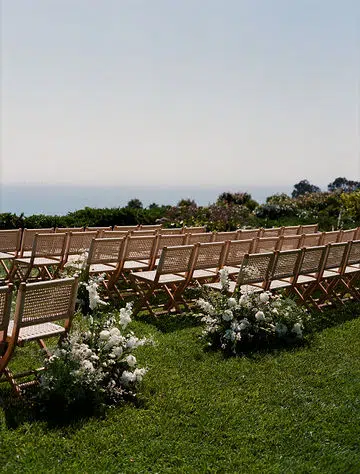 For the ceremony seating, Ventura Rentals provided Hand Woven Folding Chair, each one featuring artisan craftsmanship and a breathable, hand-woven seat. These chairs blend organically into the natural setting of Regina Ranch, offering rustic character while remaining comfortable and elegant for guests as they witness the vows.