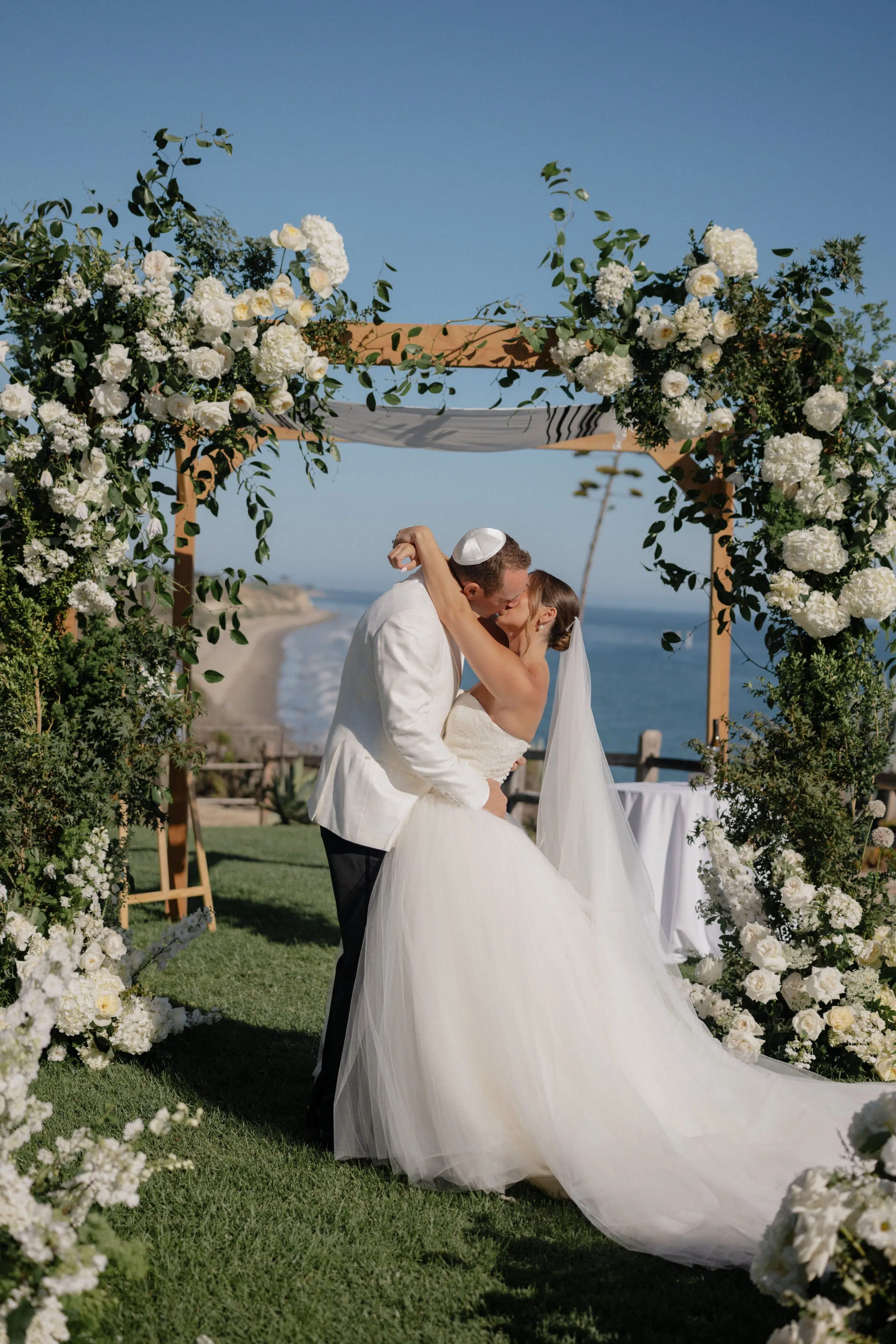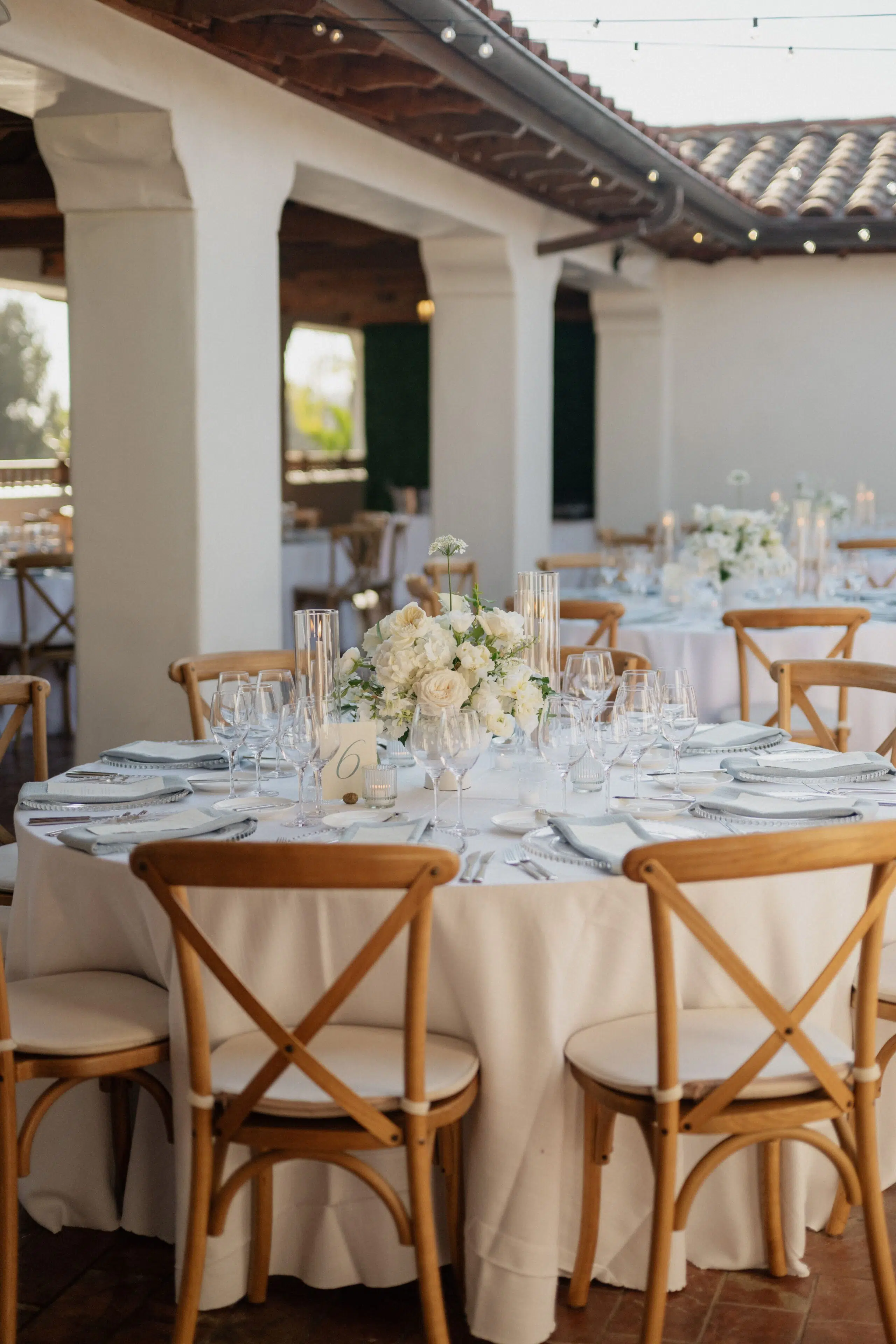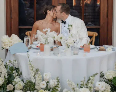 Set along the breathtaking Pacific coastline at The Ritz-Carlton Bacara in Santa Barbara, this rustic outdoor wedding by Ventura Rentals combined natural textures with refined elegance. Both the ceremony and reception featured the warm, organic tones of Weathered Wood Vineyard chairs, perfectly suited to the venue’s coastal charm. Guests gathered around Round Tables dressed in crisp Cambria White Linen, while the newlyweds enjoyed an intimate Round Table ½, creating a focal point for heartfelt toasts and shared moments.