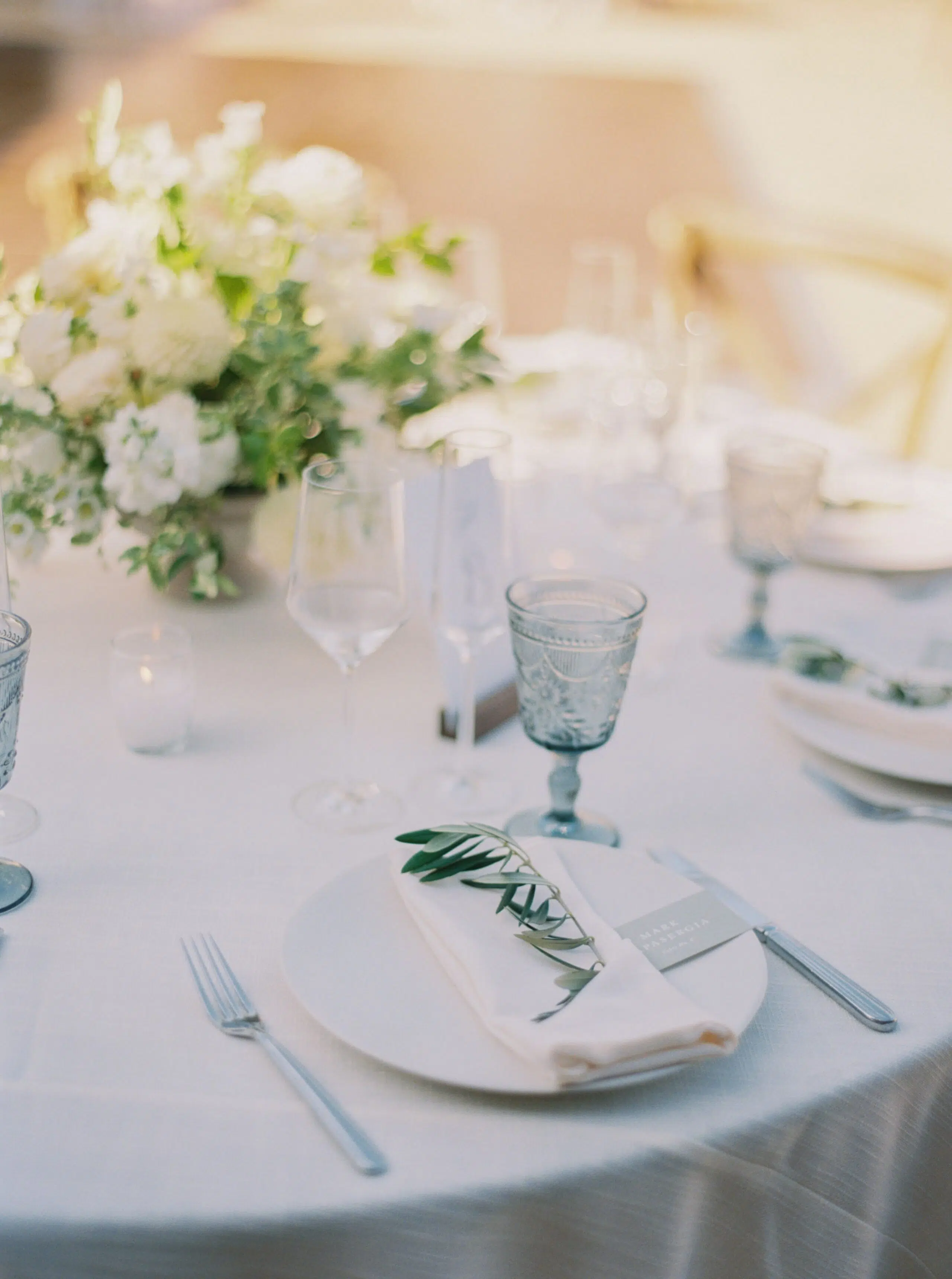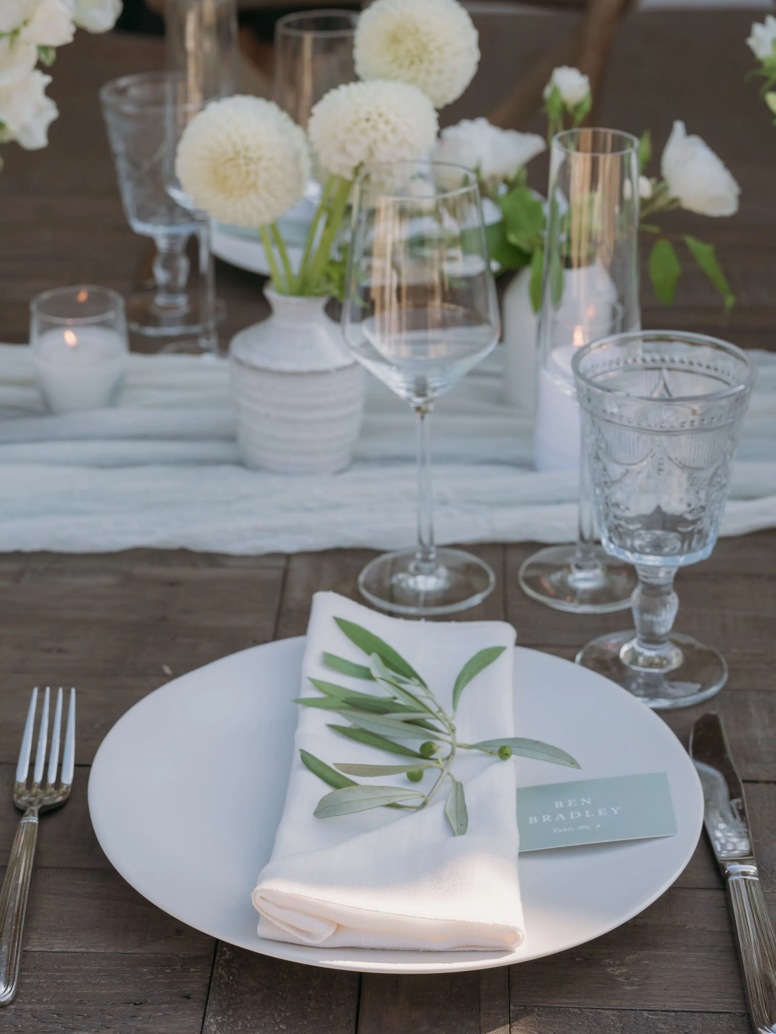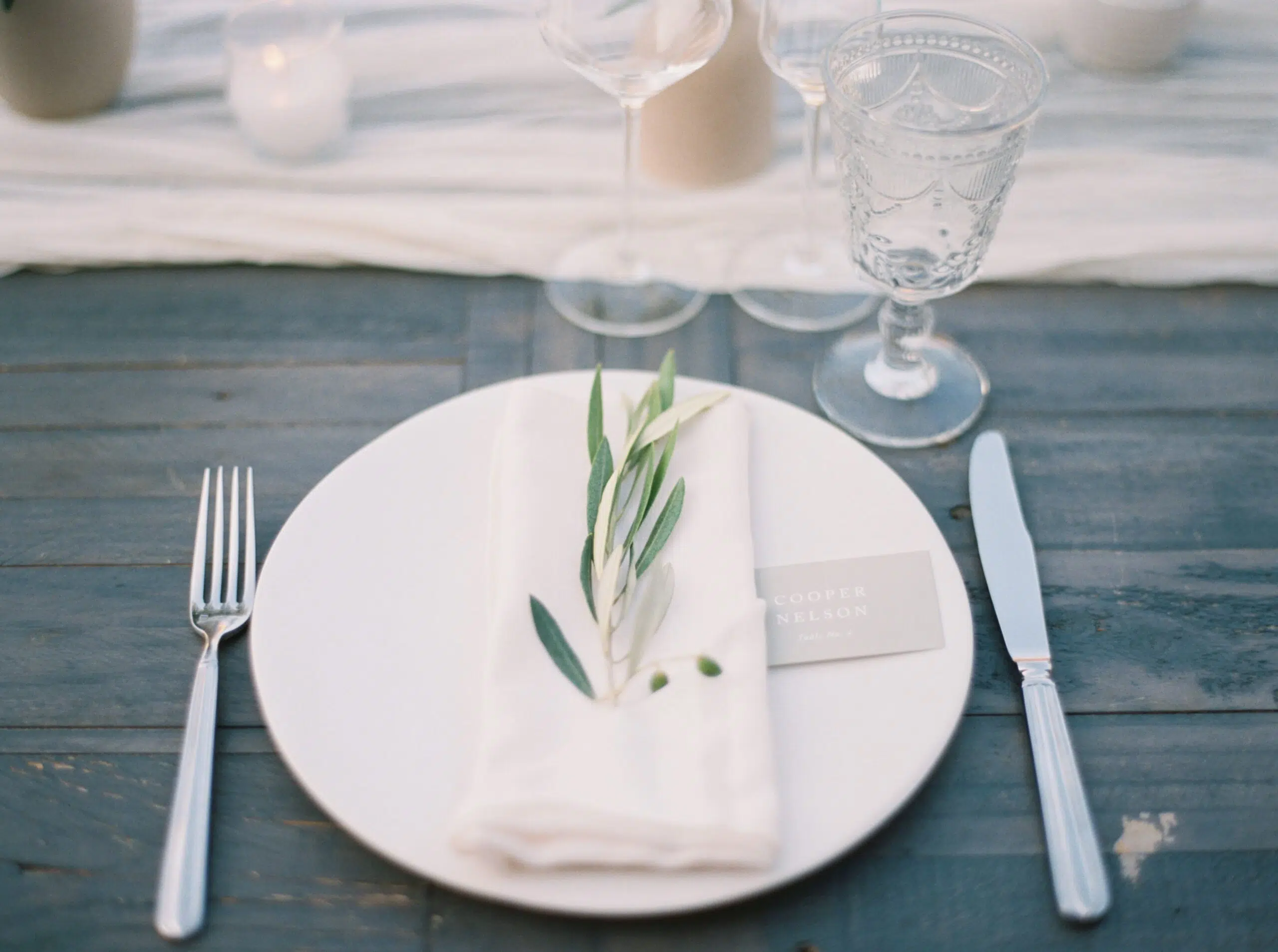 Cocktail hour was designed for effortless mingling around the Round Cocktail Table, complemented by the stylish Versailles Side Bar and inviting lounge moments with the Colmar Lovesat and Colmar Cane Chairs. The tabletop experience was elevated with Lilly Coupe China, modern Metro Stainless Flatware, and sparkling glassware including Debutante Goblets and Pure Wine Glasses. As the evening unfolded, guests gathered on the Dark Oak Dance Floor, celebrating beneath the romantic glow of Bistro Lighting W/Stands, creating an unforgettable rustic night in the heart of Santa Barbara.