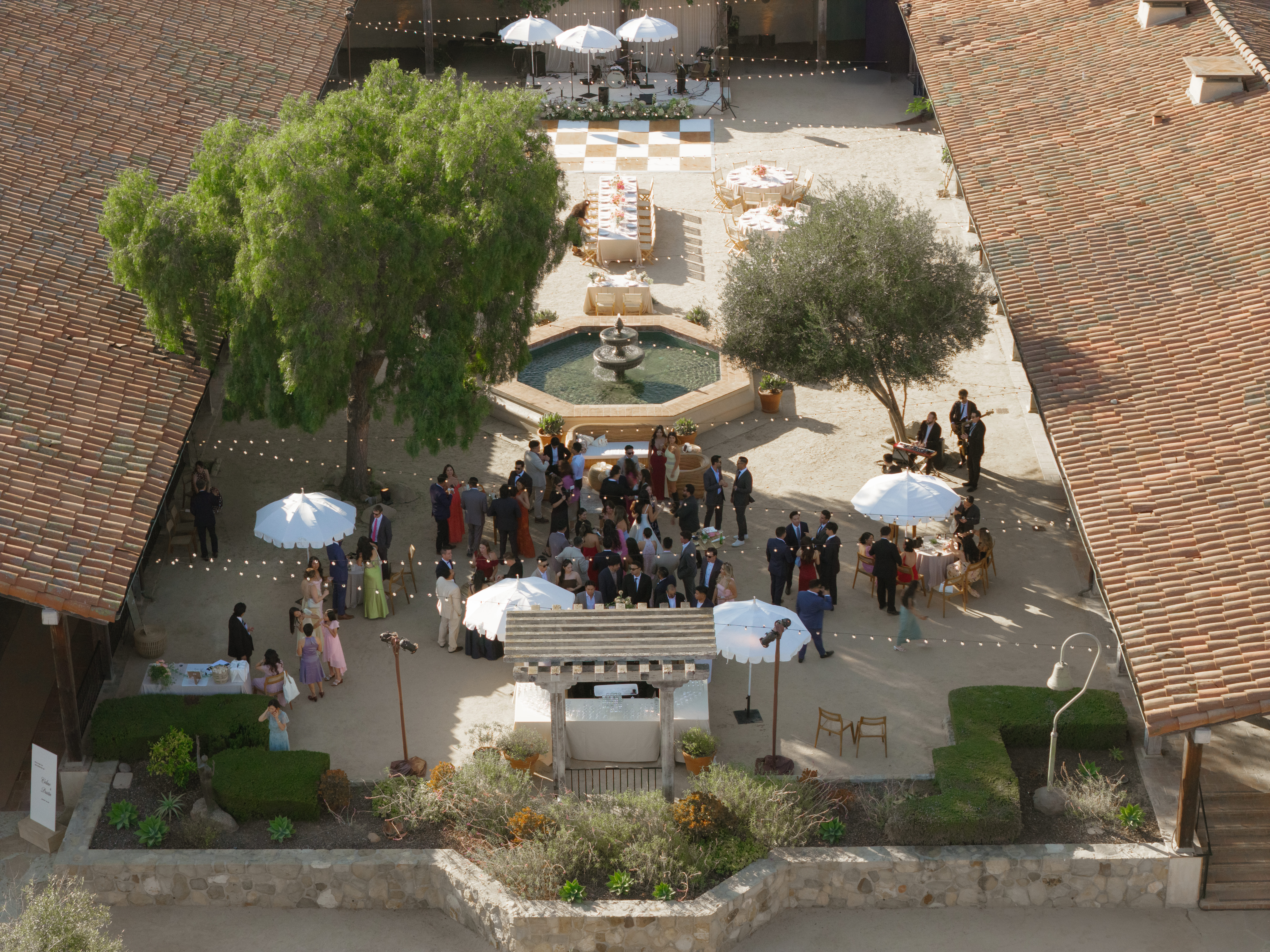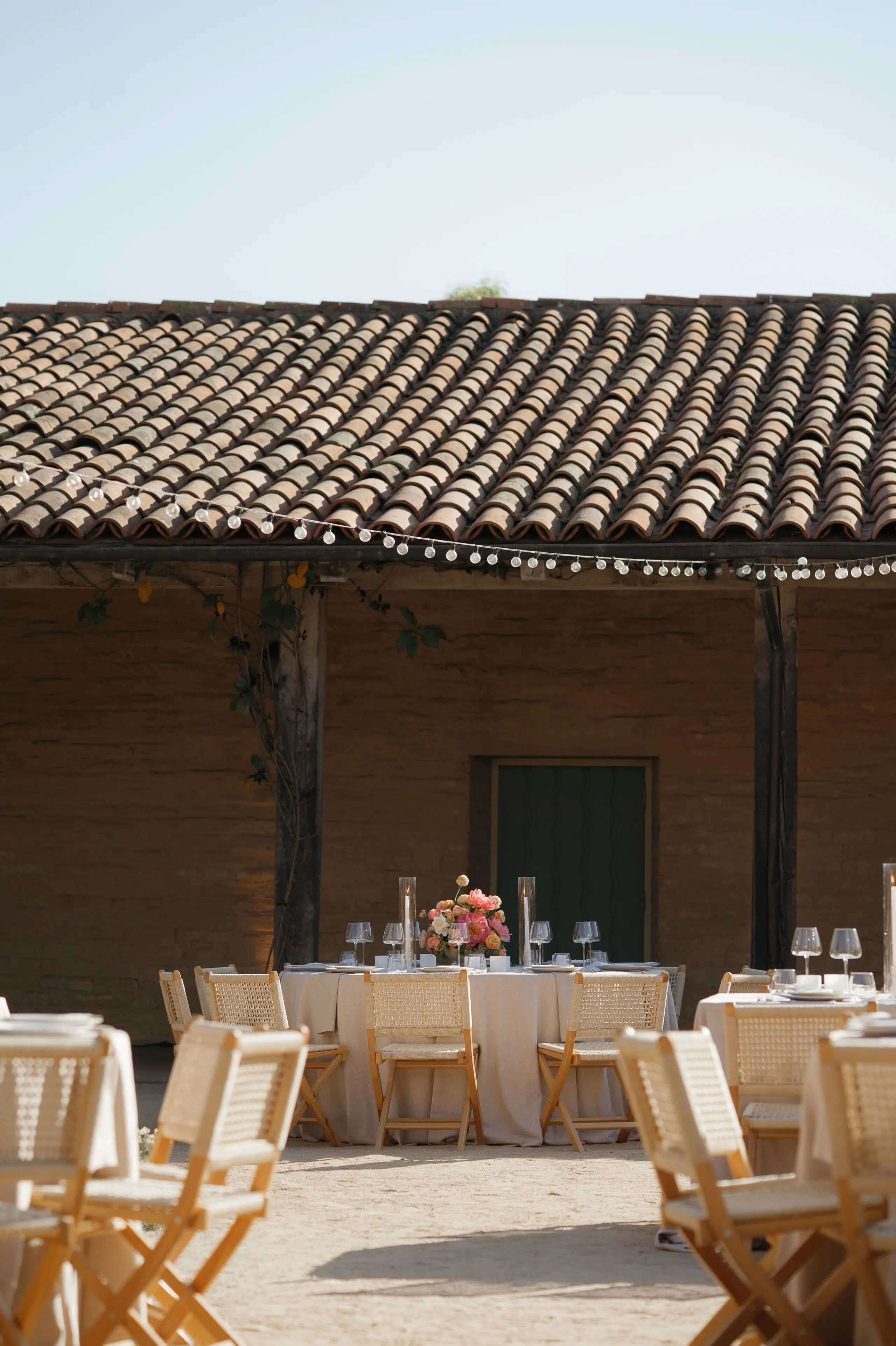 Set amid the storied courtyards and verdant corners of the Santa Barbara Historical Museum, this outdoor wedding married rustic charm with thoughtful refinement. Ventura Rentals provided each essential with care and cohesion: the ceremony unfolded before guests seated on Bentwood Natural Chair, followed by reception seating on Hand Woven Folding Chair. Round Table settings welcomed guests to dine beneath open skies, each place elevated by delicate Heirloom Bone China. Toasts shimmered in Wine Cabernet Pure Glass and Eden Glassware, capturing light and laughter alike. Anchoring the tabletop with modern elegance, Dragonfly Flatware offered sculpted lines and polished strength—its design marrying functionality with grace in perfect balance. Overhead, the White Pagoda Umbrella cast gentle shade, while nightfall revealed the striking Wood & White Dance Floor, offering a crisp stage for the evening’s celebration.
